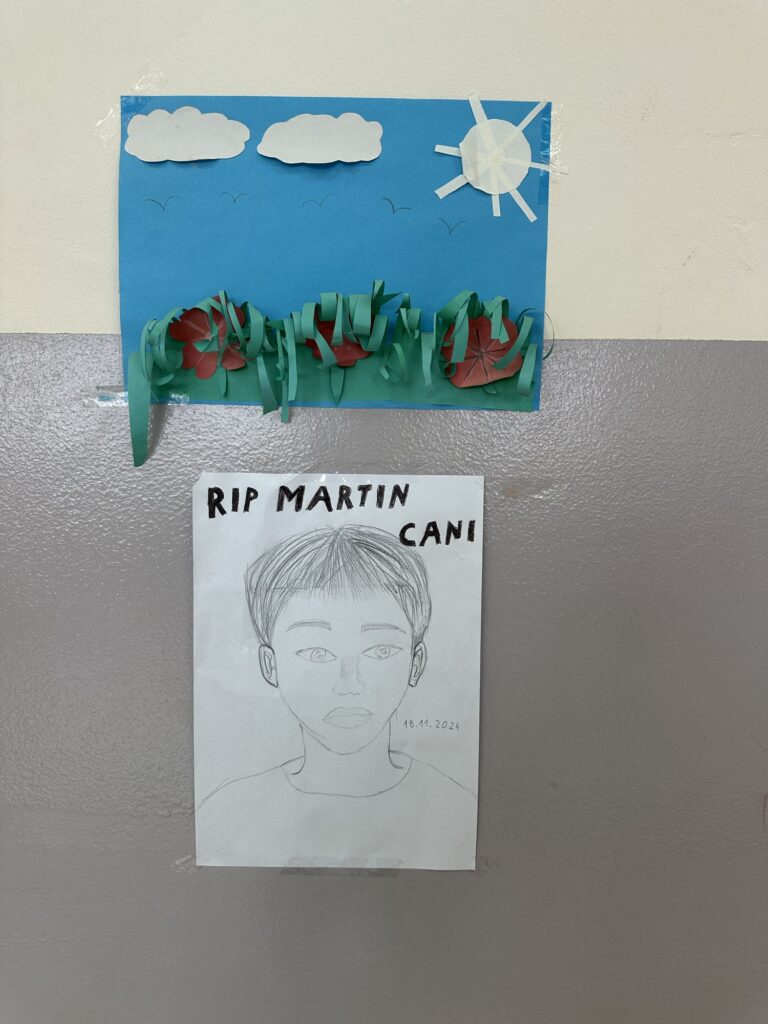 Nxënësit e Klasës së 5-të në Zhunicë Mbajnë Portretin e Martin Canit në Shenjë Solidariteti dhe Dhimbjeje për Familjen e Tij